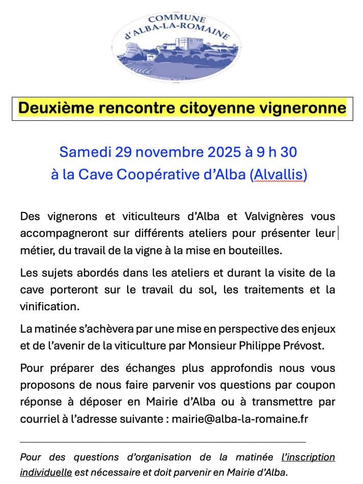 Voici la bonne adresse : accueil@alba-la-romaine.fr