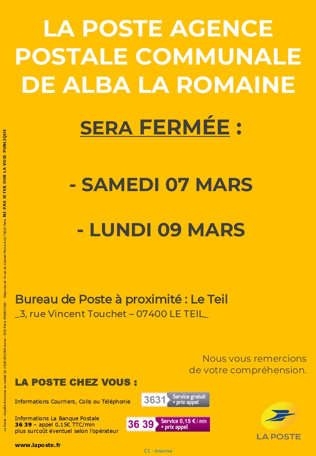FERMETURE DE L'AGENCE POSTALE COMMUNALE