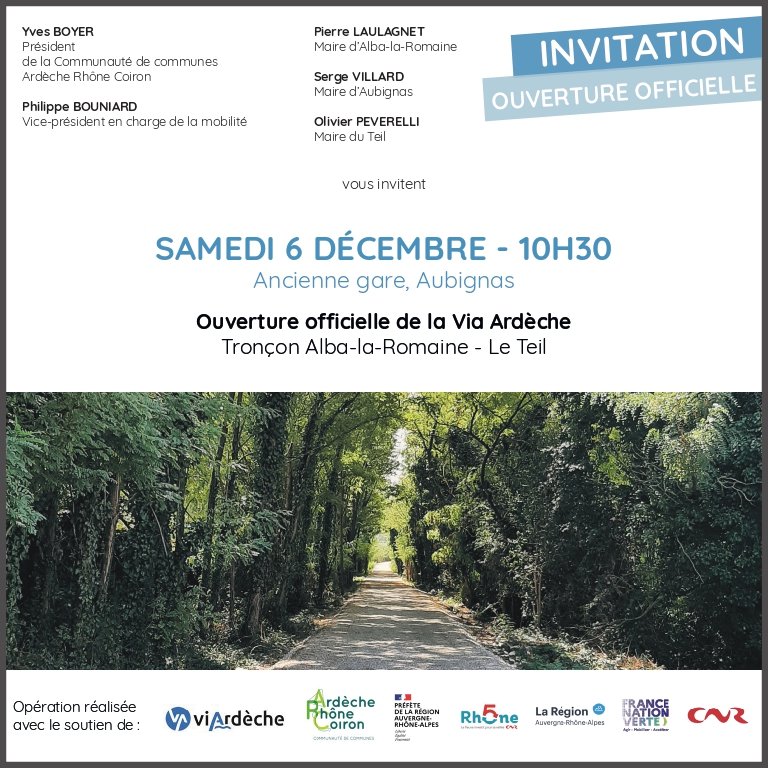 Invitation à l'ouverture officielle de la Via Ardèche Le Teil - Alba la Romaine