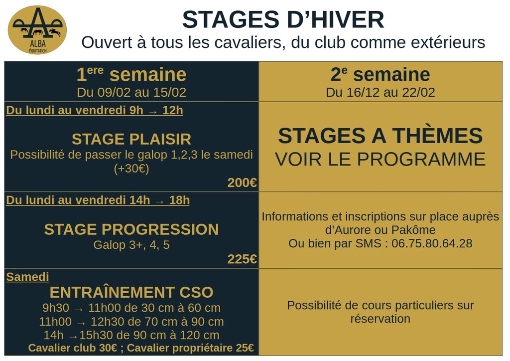 Programme des vacances d'hiver à Alba Équitation, ouvert à tous!