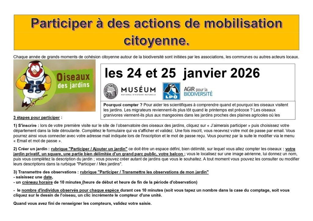 Oiseaux des jardins - Actions de mobilisation citoyenne
