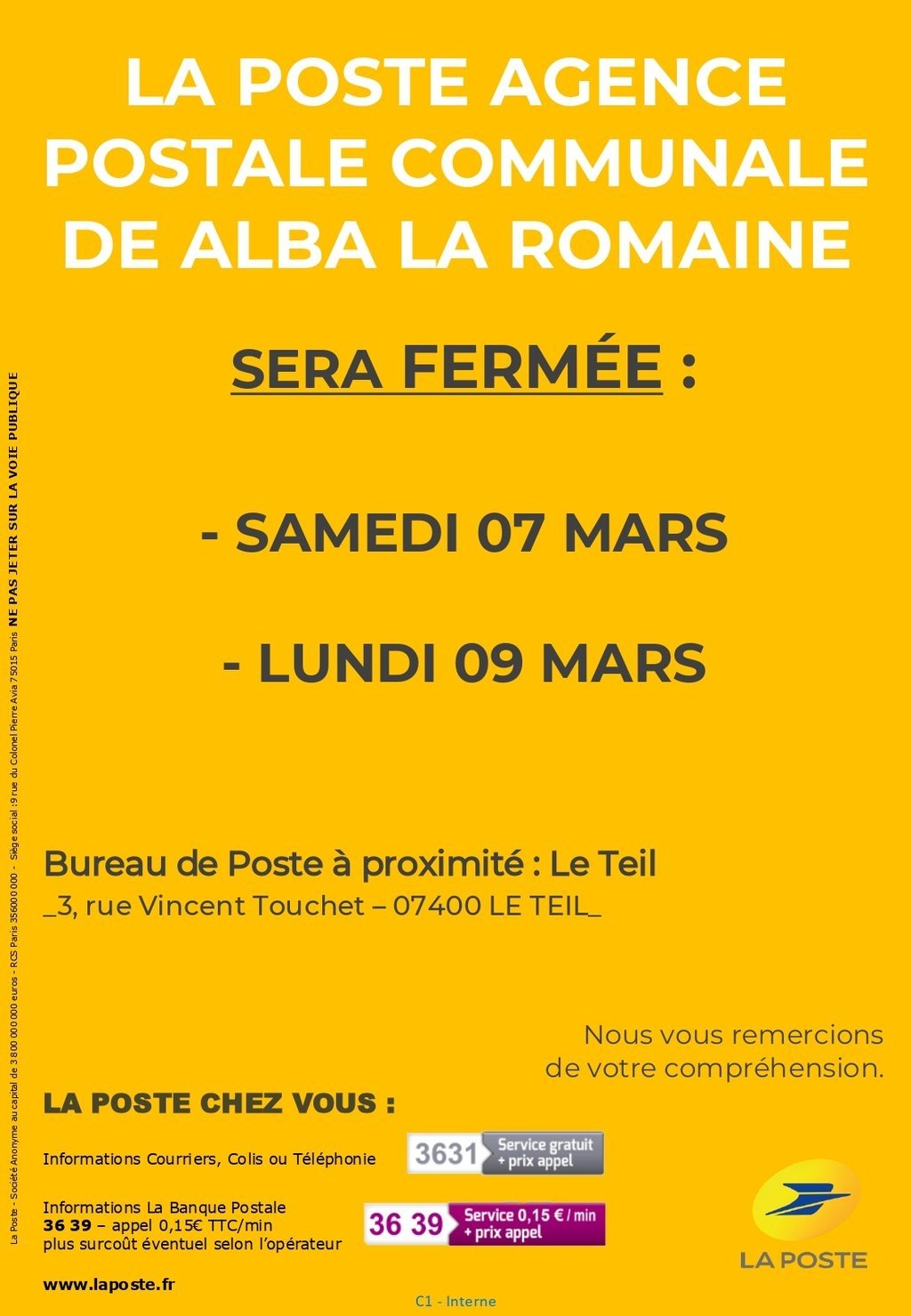 Fermeture de l'Agence Postale Communale